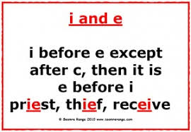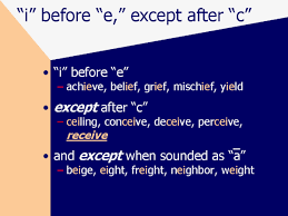 Of course, there are those who find the exceptions have swallowed the rule, rendering it useless, and these include the UK’s education department which, in 2009, advised teachers through a document titled, Support for Spelling that: “The I before e except after c rule is not worth teaching [since] it applies only to words . . . which . . . stand for a clear /ee/ sound and unless this is known, [many] words . . . look like exceptions. There are so few words where the ei spelling for the /ee/ sound follows the letter c that it is easier to learn the specific words.”