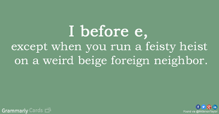 First, there are arguments over what exactly the rule should be. Some (like me) were taught what I’m calling the “neighbor [ei] rule”: “I before E, except after in C or words that say “ā” [ei], as in neighbor and weigh.”[1]