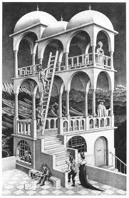 Escher was a Dutch graphic artist now famed for prints in which he combined realistic detail with impossible perspectives to achieve bizarre optical illusions, such as staircases that appear to lead both up and down from the same level. He created visual riddles, playing with the pictorially logical and the visually impossible. Though his works have a strong mathematical component, they appeal to mathematicians, scientists, and the public alike.