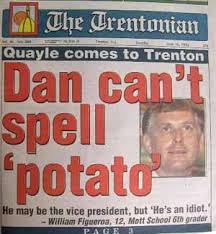1992 - U.S. Vice President Dan Quayle instructed a student to spell "potato" with an "e" on the end during a spelling bee. He had relied on a faulty flash card that had been written by the student's teacher.