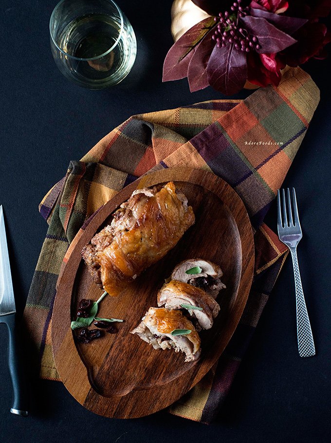 ROASTED TURKEY THIGHS STUFFED WITH DRIED CRANBERRIES, MUSHROOMS AND SAUSAGE