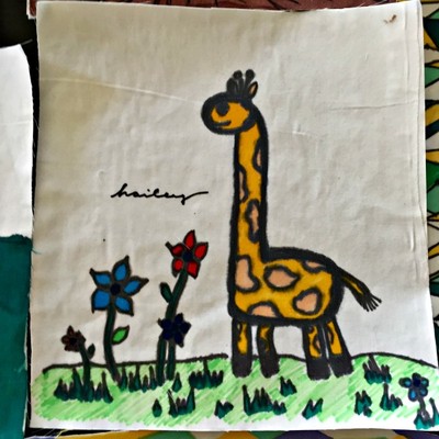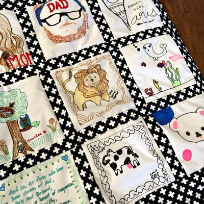 Put your stack of prepared quilt blocks, fabric markers, and and instruction sheet on the table. If you have a theme or inspiration art, include it on the table as well (this can help guests who are nervous about exercising their creativity!)