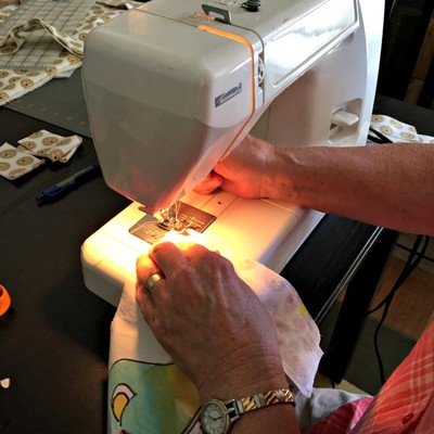 I then sewed the blocks together in rows, then added a horizontal row of sashing, then sewed the rows together.
